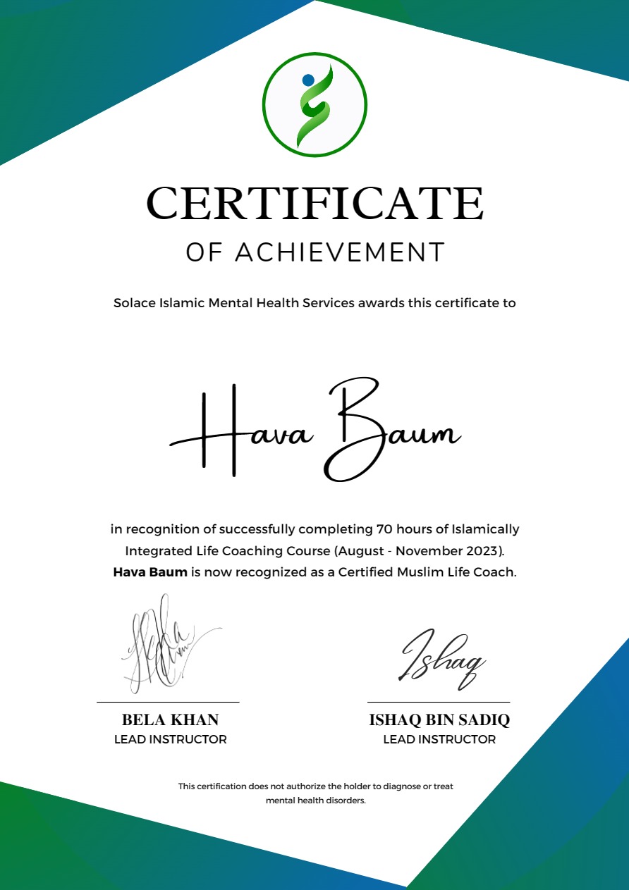 Ich bin Hava Baum, Muslima, Mama, Ehefrau und noch vieles mehr. Meine Leidenschaften haben mich dazu geführt, dass ich ebenfalls zertifizierter islamisch integrierter Life Coach, Erziehungswissenschaftlerin (MA), Turkologin (BA) und Studentin der Islamwissenschaften bin.